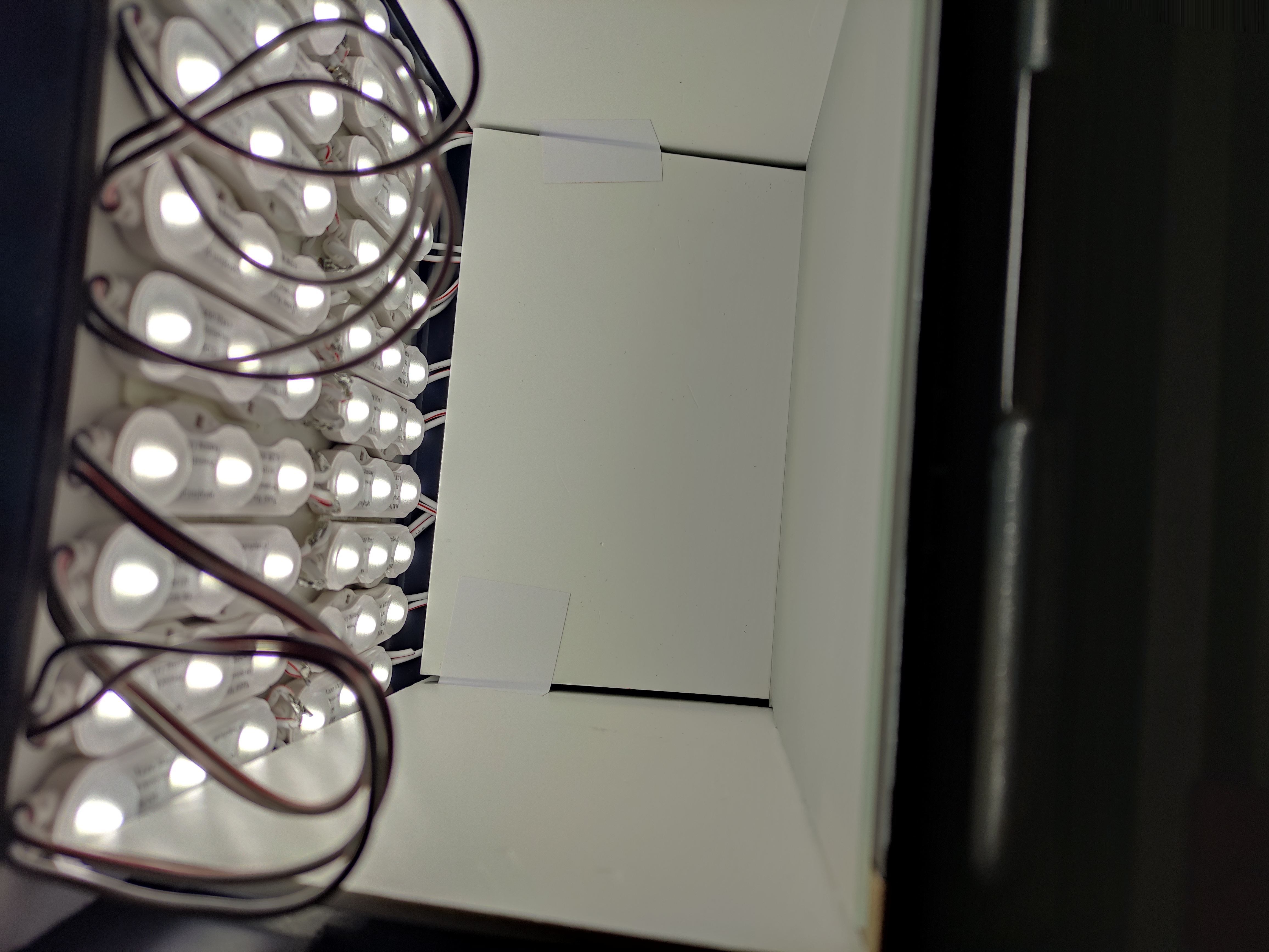 Pudło z dyfuzorami z kalki - skleiłem eksperymentalnie i jakoś działa, chociaż to akurat muszę poprawić bo jak robię z 4x5" to krawędzie nie są idealne.