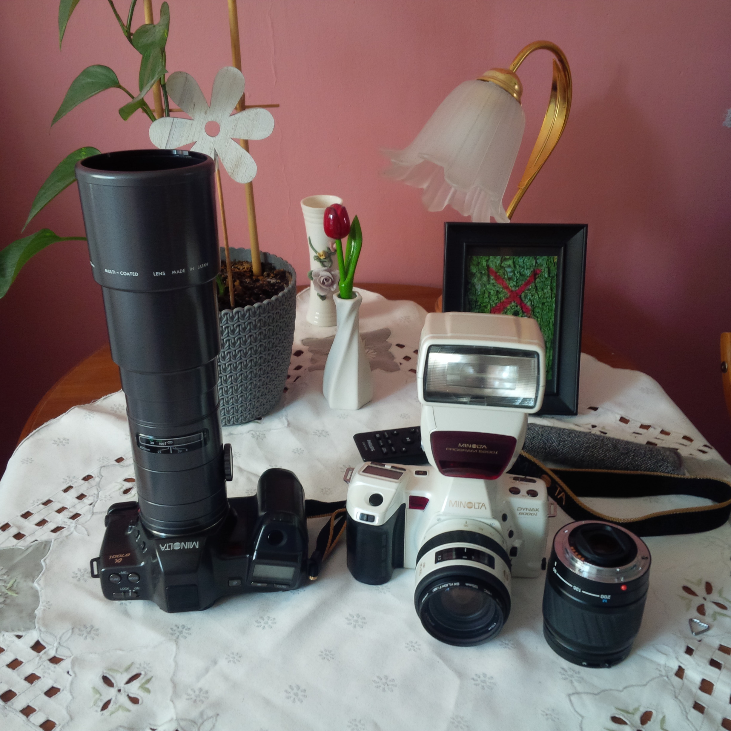 Białej Minolty LTD 8000i (aparat biały, obiektyw biały i lampa biała no i te dodatki).