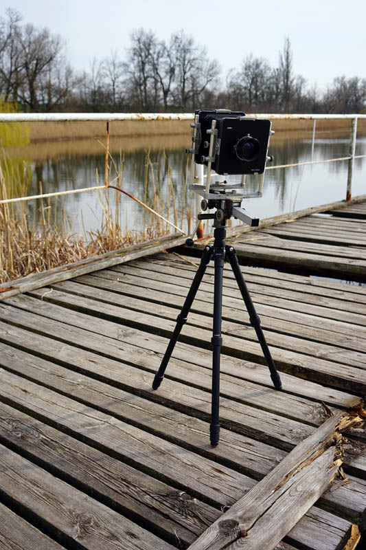 Aparat doprowadziłem do pełnej używalności. Musiałem dokupić do niego tylną płytkę, która obsługiwałaby format 4x5" (opisywałem to w osobnym wątku). Trafiła mi się taka nowszego typu, obracana pod dowolnym kątem