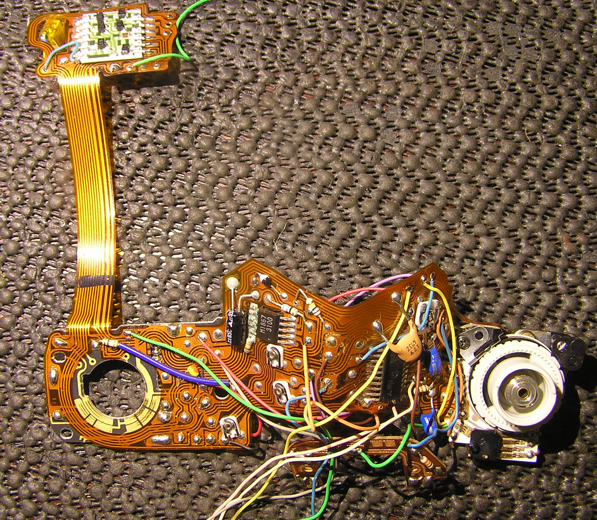 To jest kompletna "płytka" elektroniczna Minolty XG-1. Taśma flex jest delikatna, elastyczna, punkty lutownicze z wiekiem się starzeją (ona ma ponad 40 lat). Jeżeli chcesz to wyczyścić, to tylko przy pomocy IPA i to z głową. Najlepiej ręcznie.