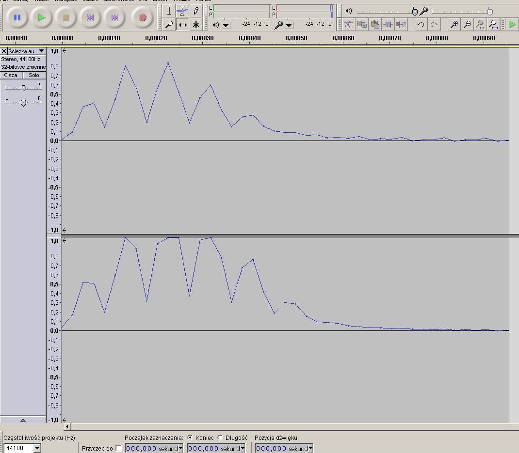 Niestety karta dźwiękowa w kompie coś słabo współpracuje, w notebooku ostatnio wyszedł mi o wiele wyraźniejszy sygnał po podłączeniu do notebooka - i to przy ustawieniu wzmocnienia tylko na 20%: