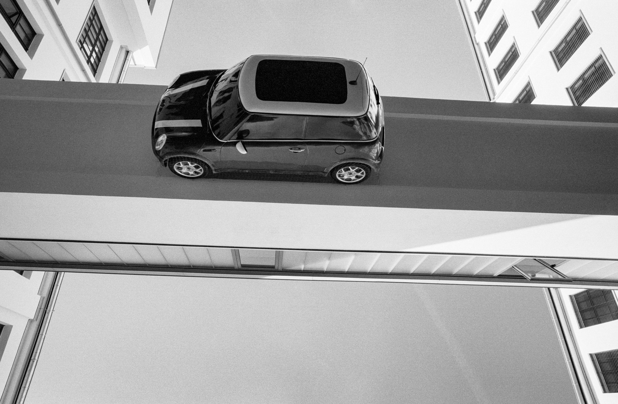 Masz na mysli motyw? Ktos podwiesil na parkingu Mini do gory nogami na takim mostku pomiedzy budynkami. Cholera wie dlaczego..