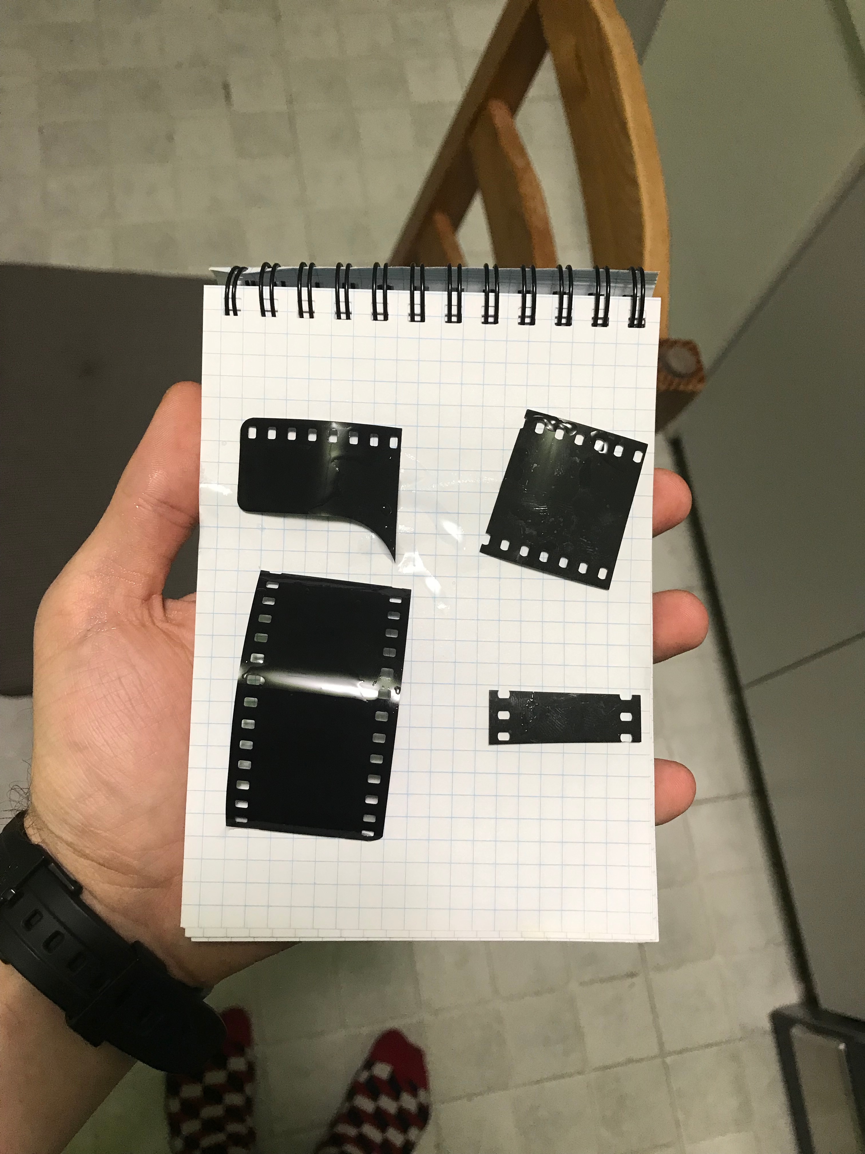 jeszcze coś mi się przypomniało: z nienaświetlonych a wywołanych negatywów robiło się zakładki do książek, były przezroczyste i do środka wsadzało się jakiś obrazek a perforację przewlekało się kolorową muliną