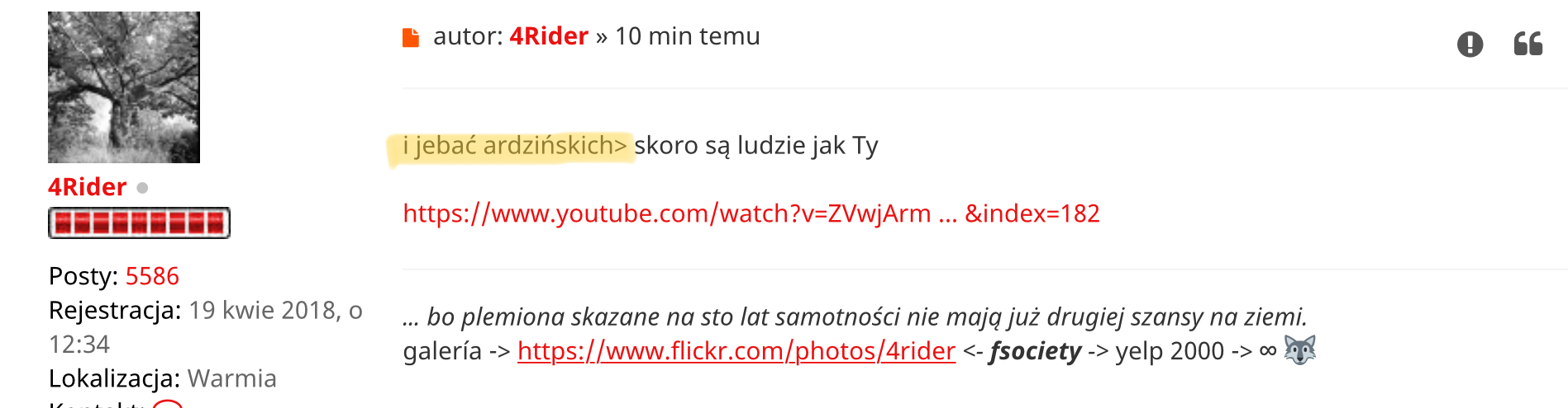 NIestety, w tym konkretnym wypadku wyrwanie chwasta w rozumieniu trwałej blokady konta (tfu) Kubusia to jedyny sposób, aby ten ogródek "analogowy" kwitł w najlepsze.oKuba pisze: ↑16 gru 2021, 18:26Pewnie nie chciales zle, ale porownanie jest jakies takie drastyczne, powiedzialbym nawet nie na miejscu.