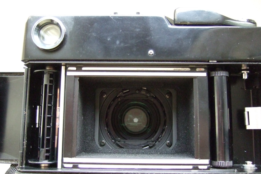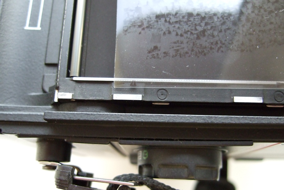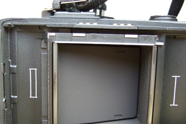 Podobny mechanizm zastosowano w aparacie Fujica 6x9 (4 zdjęcie od dołu). Zdjęcie komory filmu przedstawia dwie pary prowadnic - płytka dociskowa opiera się o te szersze prowadnice , a pomiędzy nimi jest film. Podejrzewam też że we wszystkich aparatach bez kaset, gdzie zmieniamy tylko płytkę na stronę lewo/prawo jest podobnie. Macie takie aparaty to sprawdzicie.