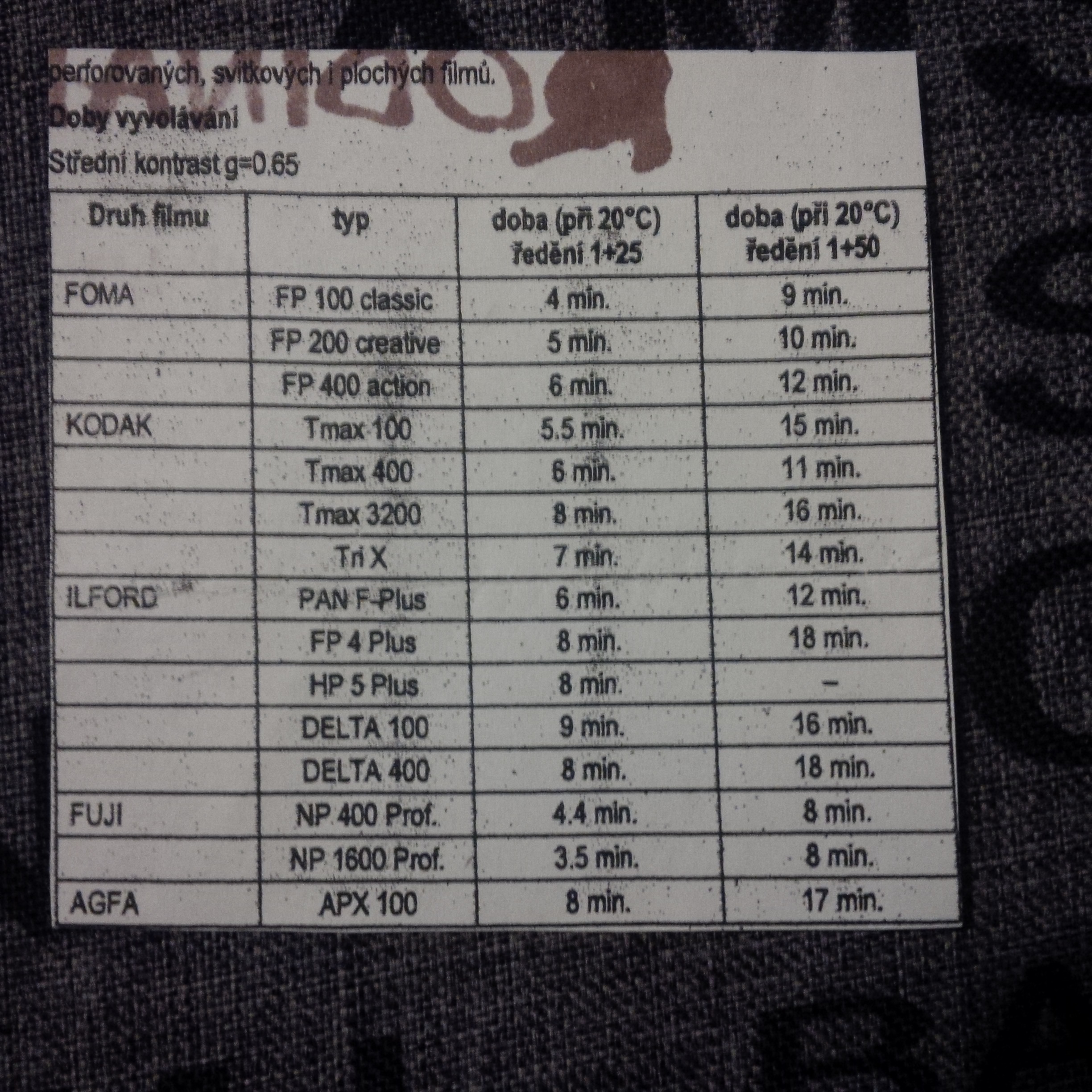 A czy ja napisałem że to dotyczy Twojej ulotki? Ulotka z F09, bo tak chyba oznaczała Foma swój Rodinal.