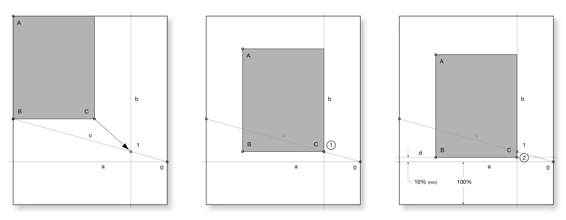 2. wyznaczamy linie z dolnego, lewego rogu zdjęcia (lit.B) do prawej połowy pozostałego miejsca dolnej części