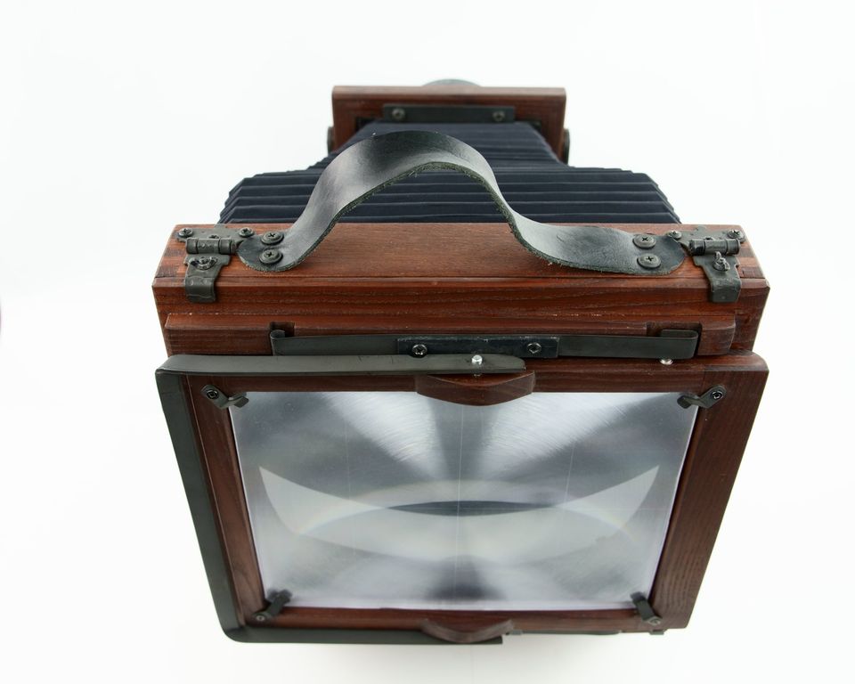 Sprzedam kamerę wielkoformatową 8"x10". Wykonana została z Thermo drewna - jesion oraz dębowego. Elementy z drewna zabezpieczone zostały specjalnym olejem i woskiem konserwującym wysokiej jakości (Oli-Natura Hartwachsol).
