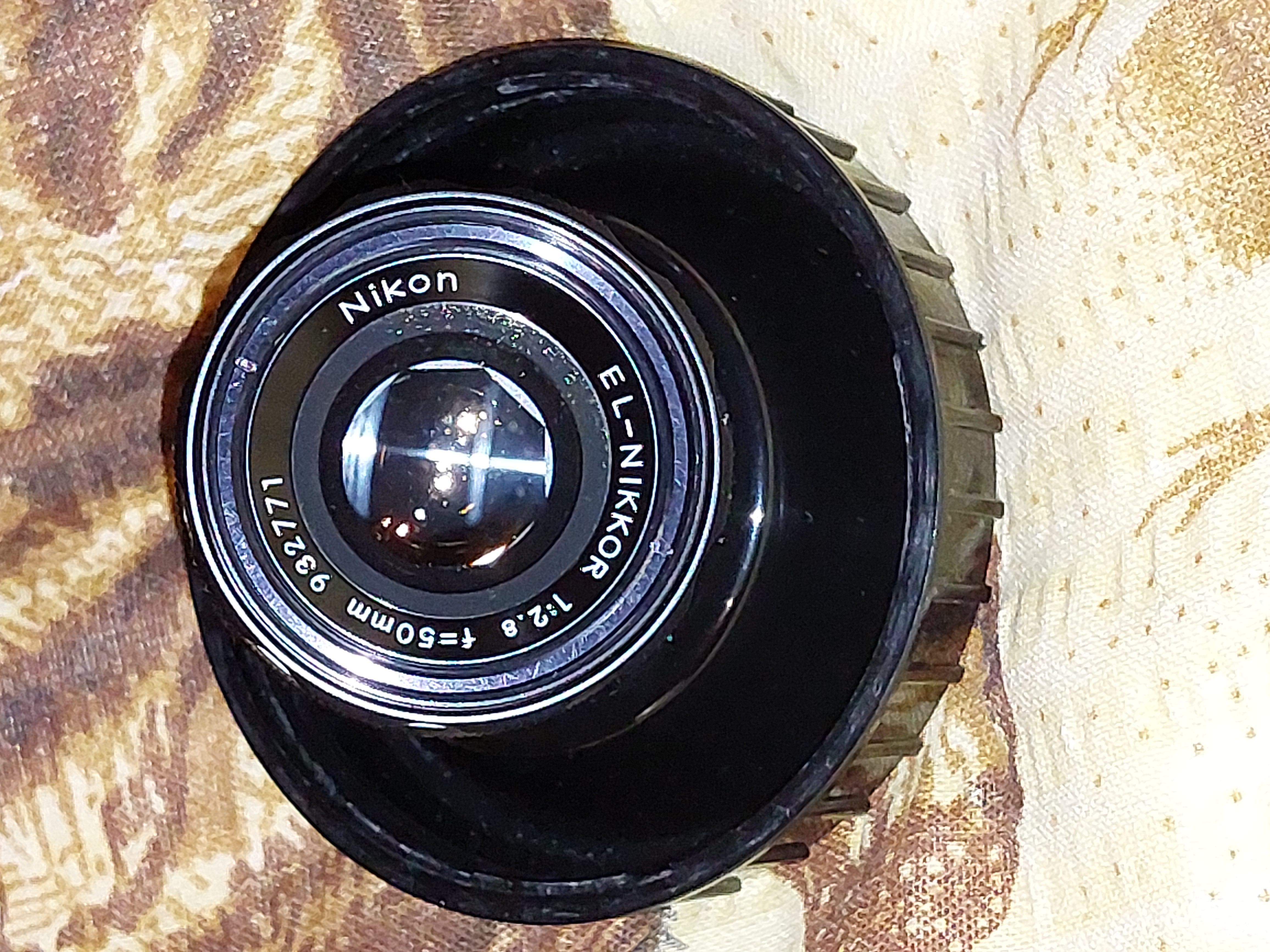 Pierwszy to EL Nikkor 1:2,8 50 mm. Konkretnie do sprzedaży jest egzemplarz widoczny na zamieszczonym zdjęciu. Obiektyw sprawny, bez widocznych oznak użytkowania. W komplecie z obiektywem jest oryginalne etui (czarna podstawa z gwintem do wkręcenia obiektywy i przezroczysty klosz zamykający całość. Wszystko to w oryginalnym pudełku kartonowym.