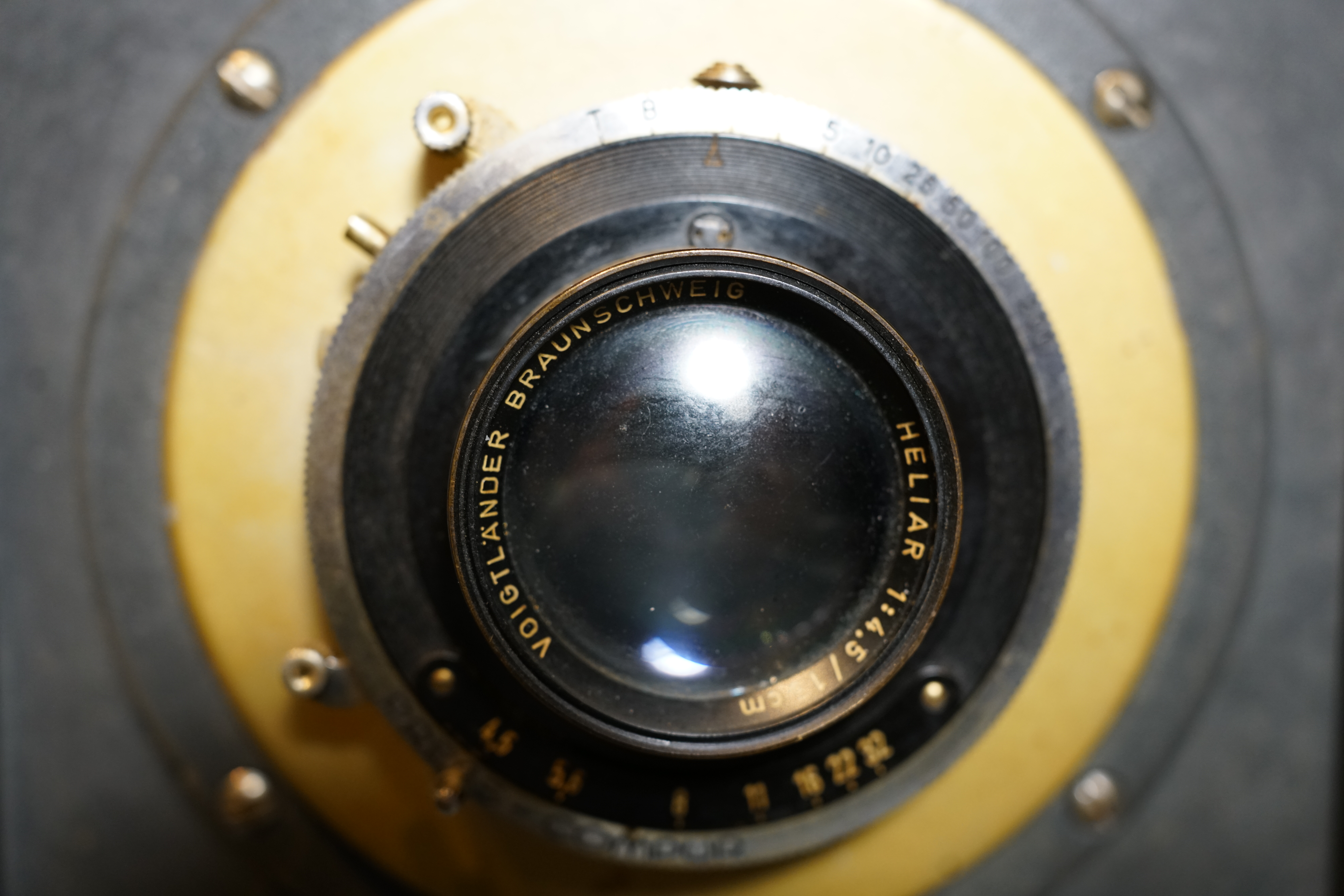 Obiektyw Voightländer Braunschweig Heliar 1:4,5 15cm. Pstryka, że hej!!! Ładnie wyglądają czasy i przesłona.