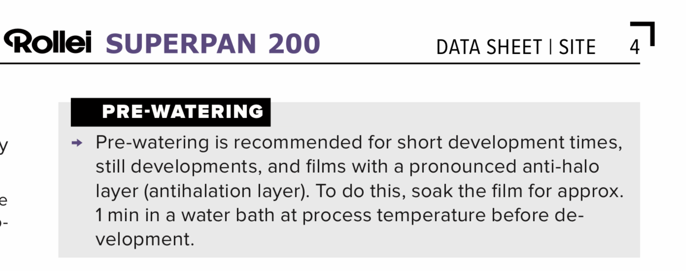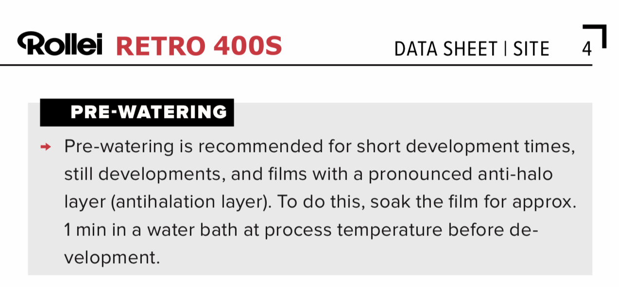 Rollei enigmatycznie w swoich aktualnych manualnych podkreśla że wstępne namaczanie jest zalecane przy znaczącej warstwie anty-halo (załącznik).