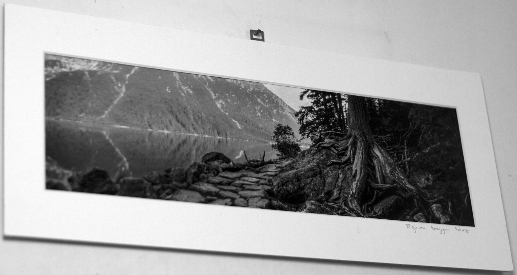 Aparat zakupiłem w USA, kosztował mnie na początku ubiegłego roku jakieś 300 zł z przesyłką. Wtedy sprzedawał go sam twórca, później szedł przez Amazona. Nazywa się Clipper, jest wydrukowany na drukarce 3D. Film 120, cztery klatki 6x18 cm. "Ogniskowa" 75 mm, otwór 0,3 mm. Film jest wygięty i prowadzony po łuku,każdy punkt leży w tej samej odległości od otworu. Na zdjęciu widać całą klatkę - można zauważyć brak zakrzywienia perspektywy. Ustawiane kadru na oko, po pewnym czasie dochodzi się do wprawy. J.A. otrzymał wydruk na drukarce epsona 2880R, na papierze również epsona. Niestety, nie mam jeszcze powiększalnika, w którym mógłby taki format powiększać, więc do tego zdjęcia negatyw jest przefotografowany nikonem d300. Ale wszystko na dobrej drodze, może uda się laboratora 8x10 przywrócić życiu (dziękuję CBK!!).