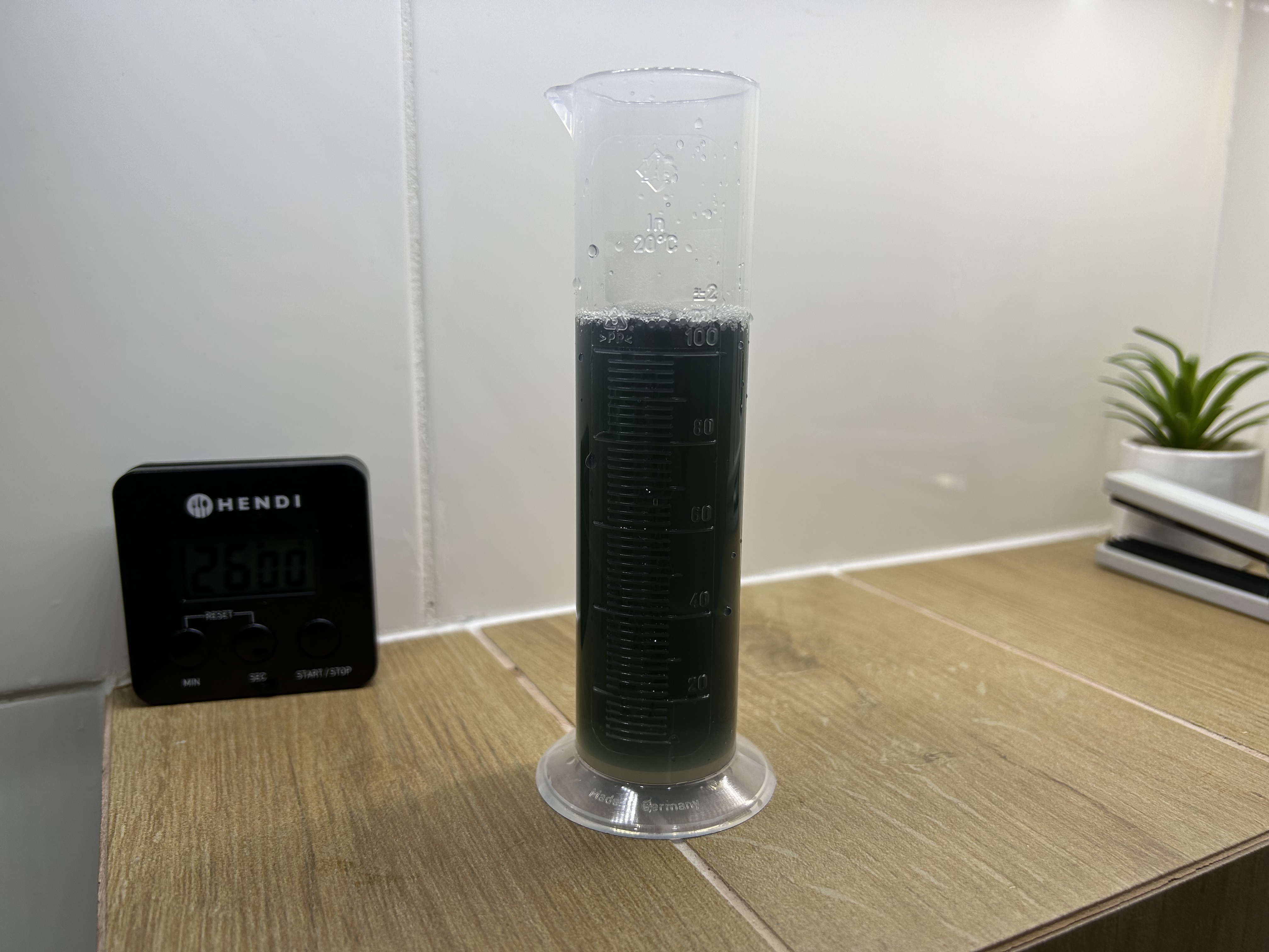 600ml wody destylowanej wlałem do koreksu na 3 minuty, między czasie mieszałem, wypłynął czarny węgiel. Dla pewności jeszcze raz przepłukałem, ale za drugim razem już tylko lekko fioletowy był zafarb.
